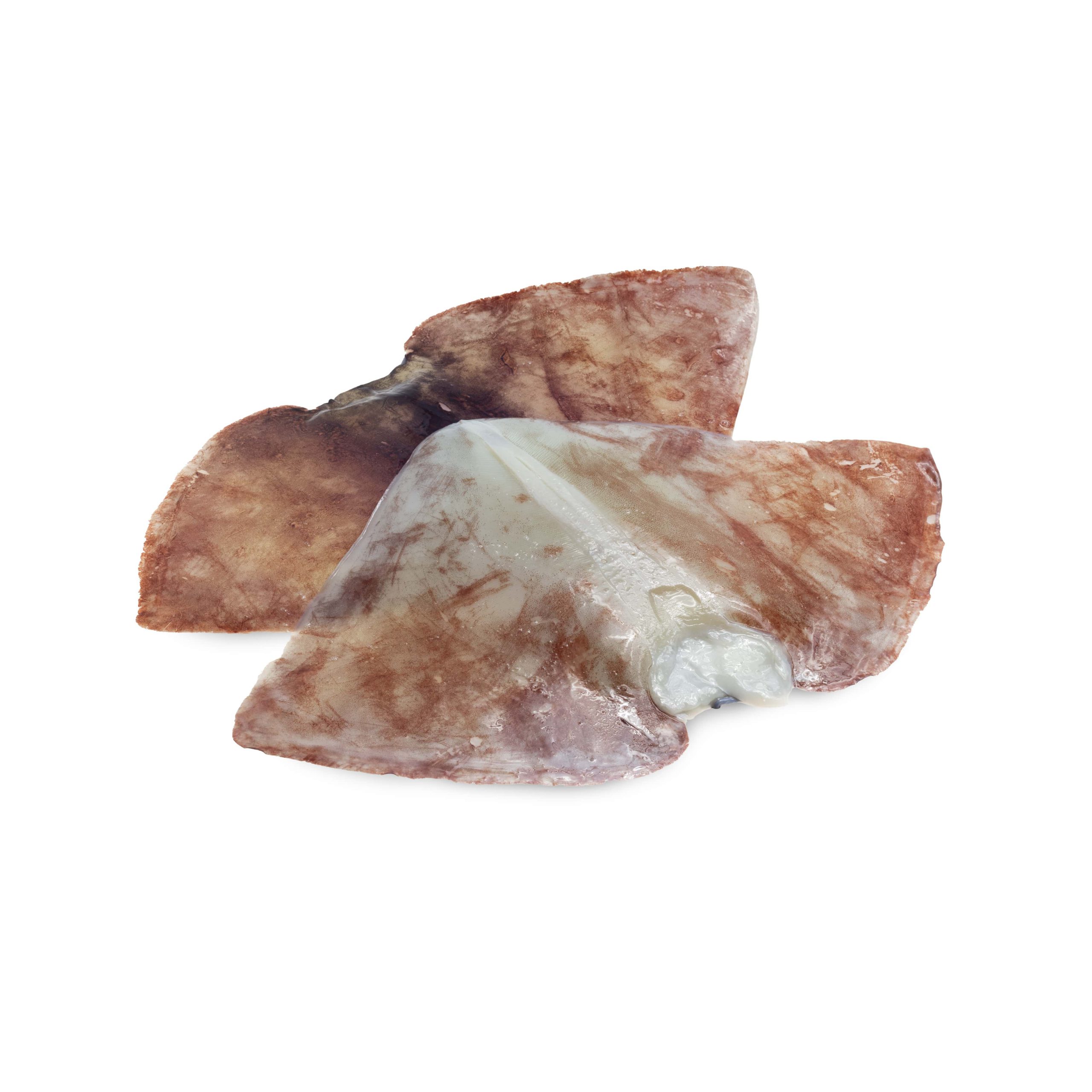 Giant squid wings with or without cartilage. Whole or cross cut. Packed and frozen in block of 10 Kg. (100% net weight).